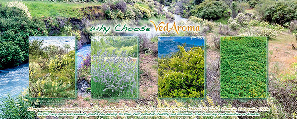 VedAroma Our essential oils are derived from plants that are grown without the use of chemical fertilizers, herbicides, pesticides, or fungicides, and are distilled slowly under low pressure to ensure maximum potency and effectiveness.